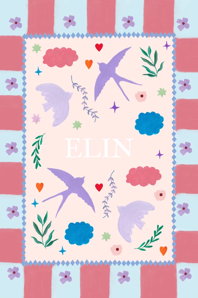 Hoe vrolijk en uniek is dit kaartje? Een print op de voorkant met zwaluwen, bloemen, takjes, wolkjes, hartjes & sterretjes geeft een vrolijke vibe maar heeft ook iets schattigs.