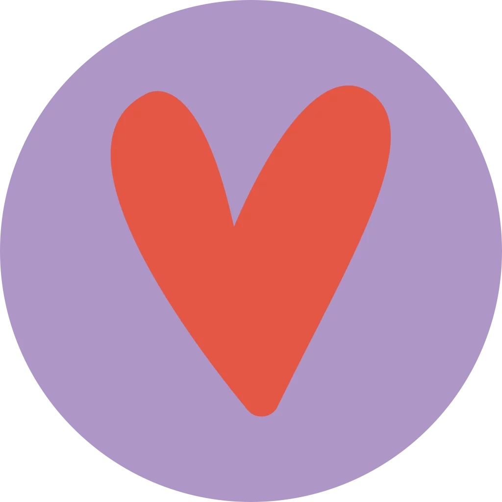 Kleurrijke sluitzegel met rood hartje en paarse achtergrond. Perfect voor bij een vrolijk geboortekaartje om het helemaal af te maken!