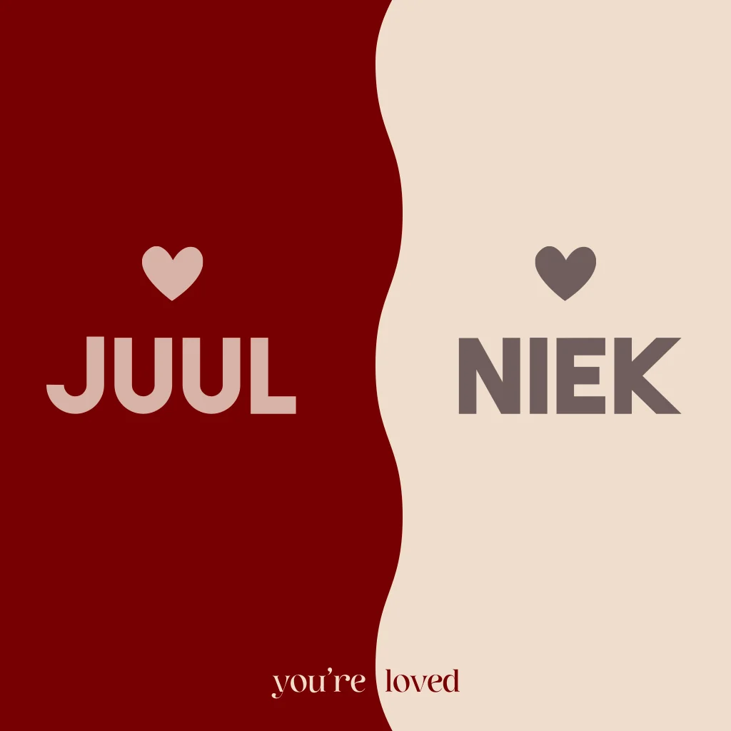 Een mooi geboortekaartje voor een tweeling met een strak en eigentijds ontwerp. Het kaartje is verdeeld in twee helften met een golvende scheiding, zodat beide kindjes een eigen plek krijgen op het ontwerp.