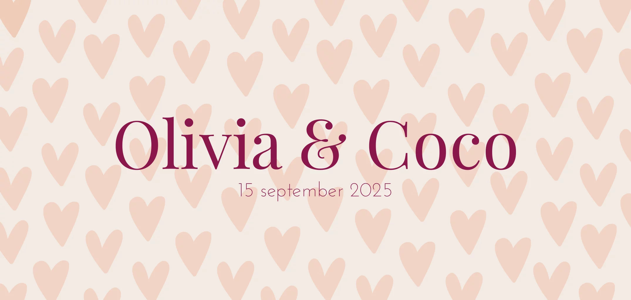 Geboortekaartje tweeling hartjespatroon