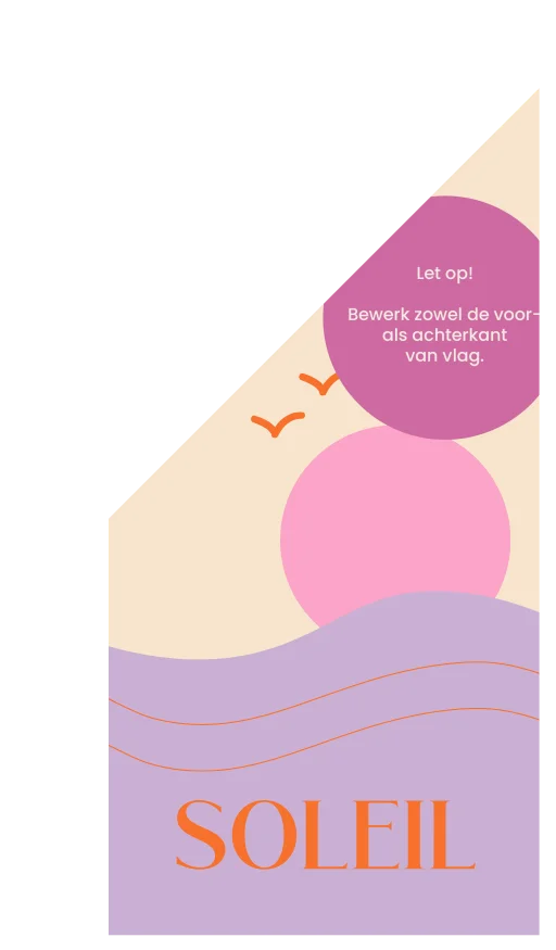 De geboortevlag heeft een illustratie van een zondergang met paarse achtergrond en roze & oranje.