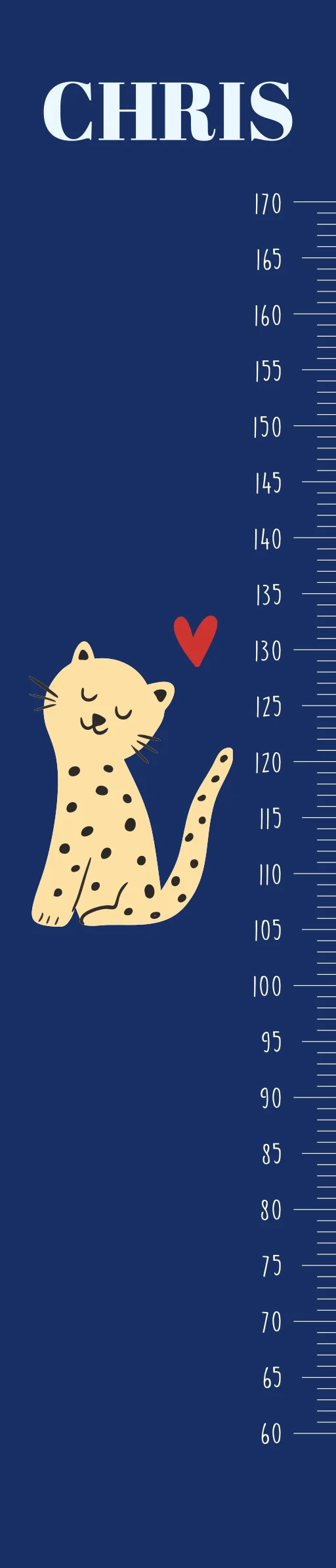 Een leuke groeimeter voor op de kinderkamer! Deze groeimeter is niet alleen handig maar maakt de kamer ook vrolijk door de schattige luipaard. Uiteraard kan dit in stijl van het geboortekaartje, of je gaat voor een leuk printje die je op de kinderkamer vindt passen.