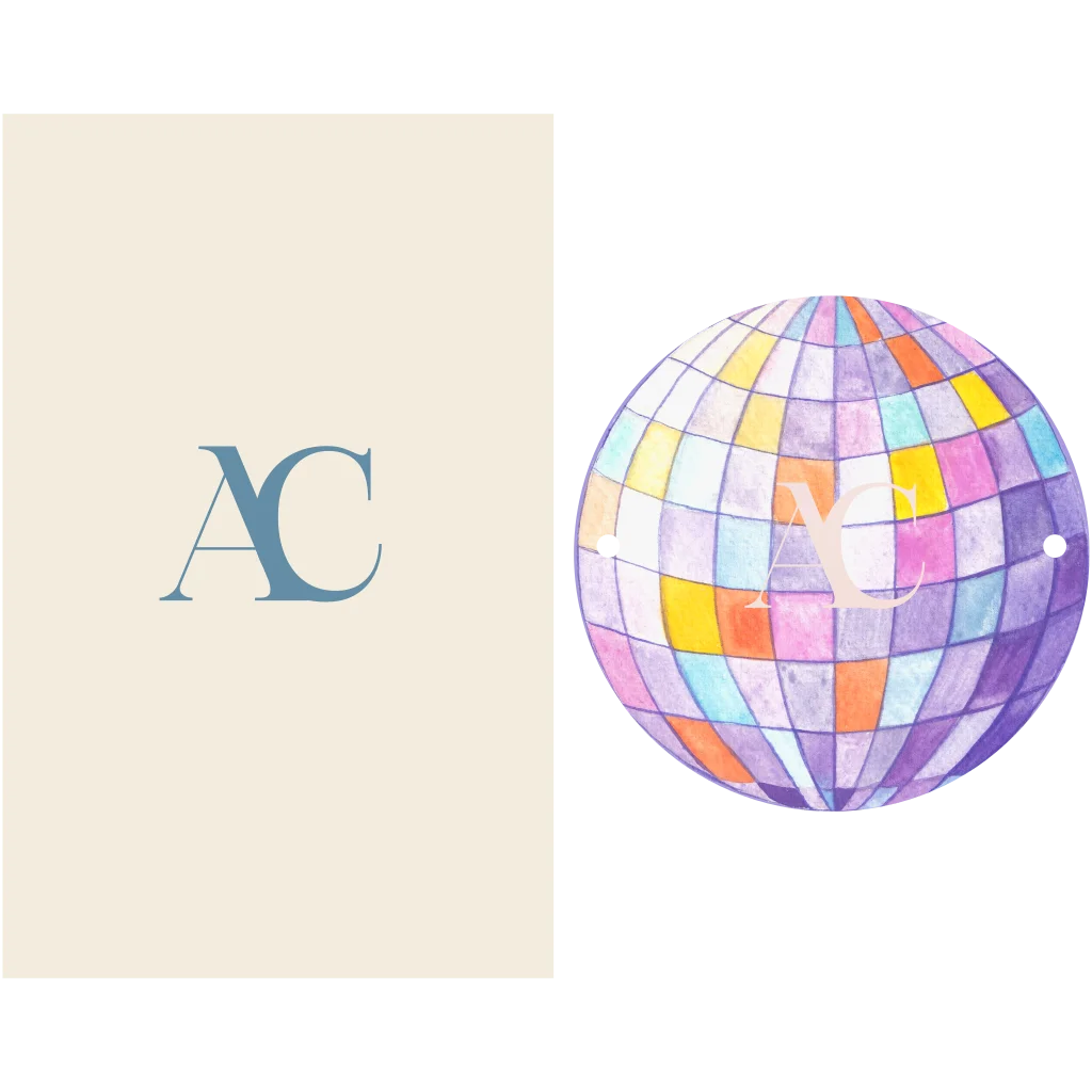 Mooie minimalistische trouwkaart met een discobal. De discobal bevat 2 gaatjes waardoor je hem kunt vastknopen aan de andere kaart.