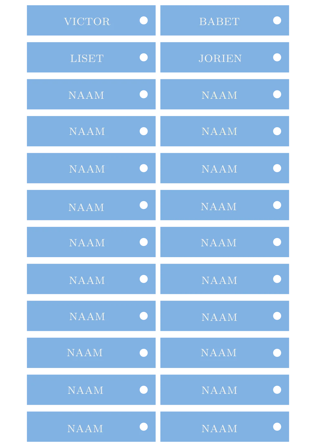 De labeltjes kun je aan de menukaart bevestigen met een splitpen. Kijk op de pagina Bevestiging voor alle bevestigingsmaterialen. Je kunt bijvoorbeeld ook een leuke tassel toevoegen voor een speelse look.