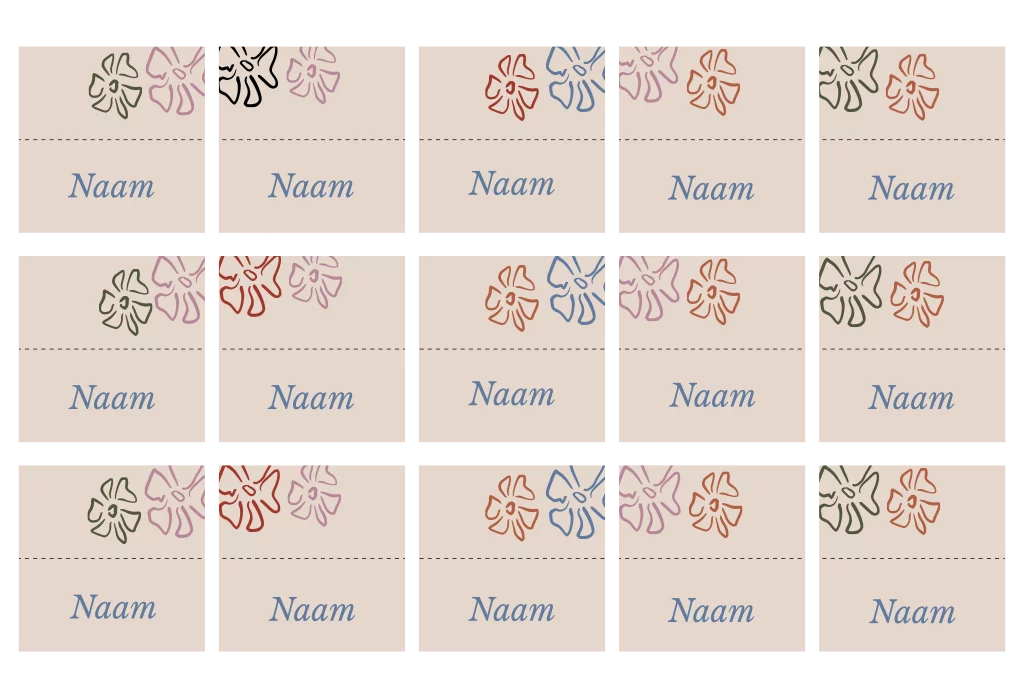 Unieke stijlvolle naamkaartjes om op de tafel te zetten of bij op de stoelen voor de ceremonie. Zo zien de gasten duidelijk was ze moeten zitten en is alles in dezelfde stijl van jullie bruiloftsdrukwerk.