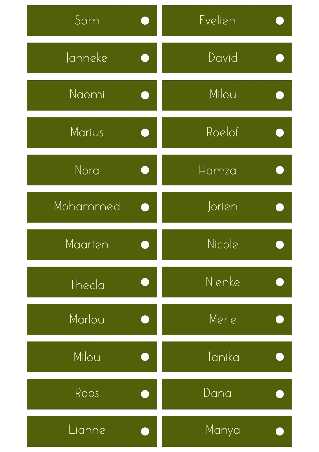Naamkaartjes Labeltjes Groen met Gaatje Naomi David