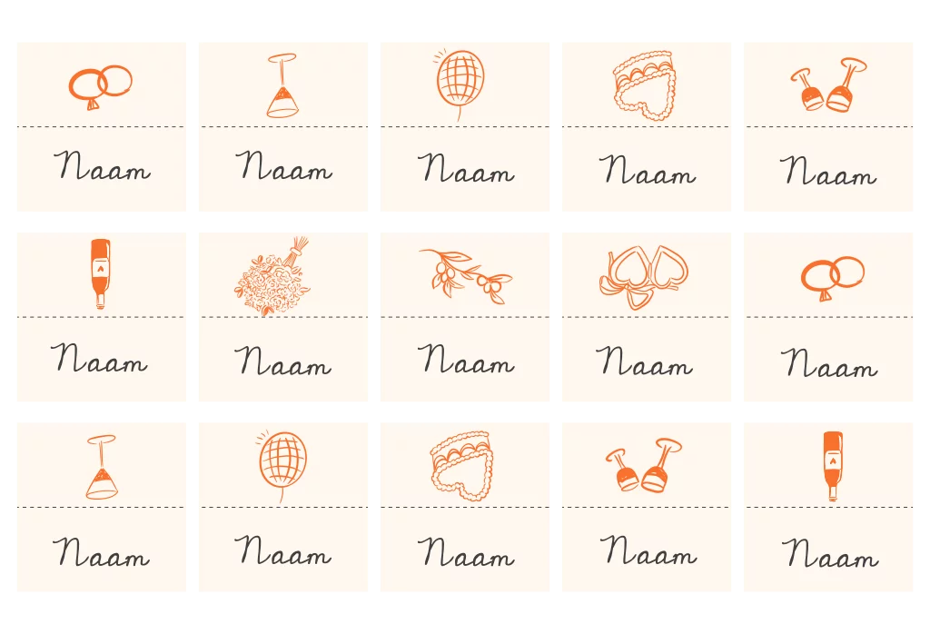 Maak je tafelsetting compleet met deze geweldige naamkaartjes met getekende elementen.