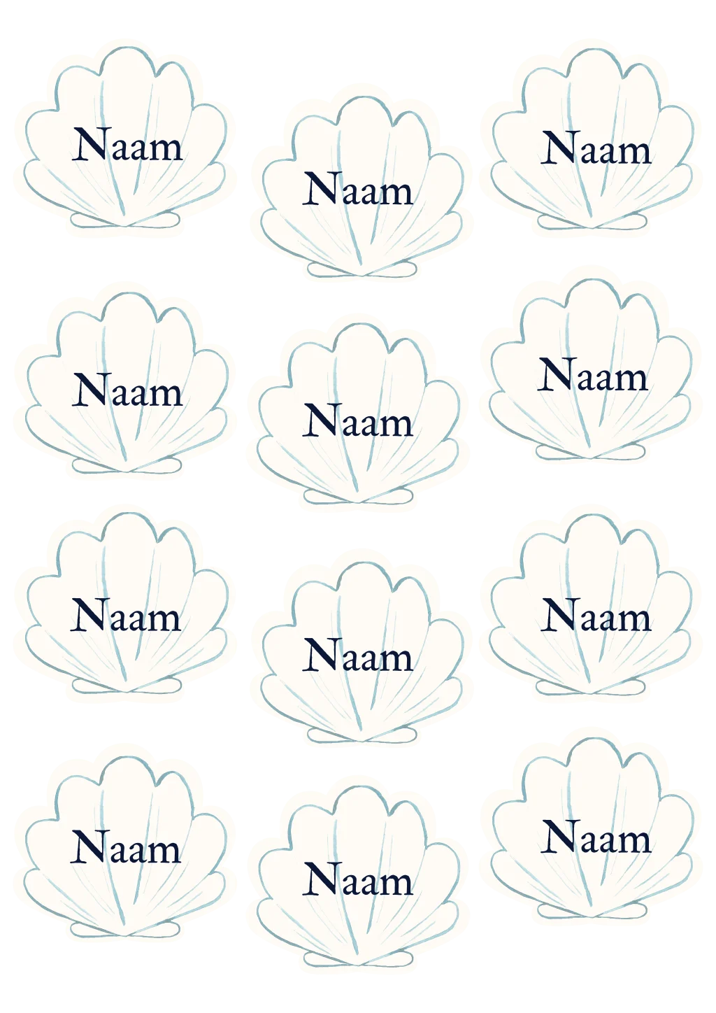 Prachtige naamkaartjes om de tafel helemaal af te maken. De kaartjes zijn in een schelpvorm. Passend bij de uitnodiging en leuk voor een beach wedding!
