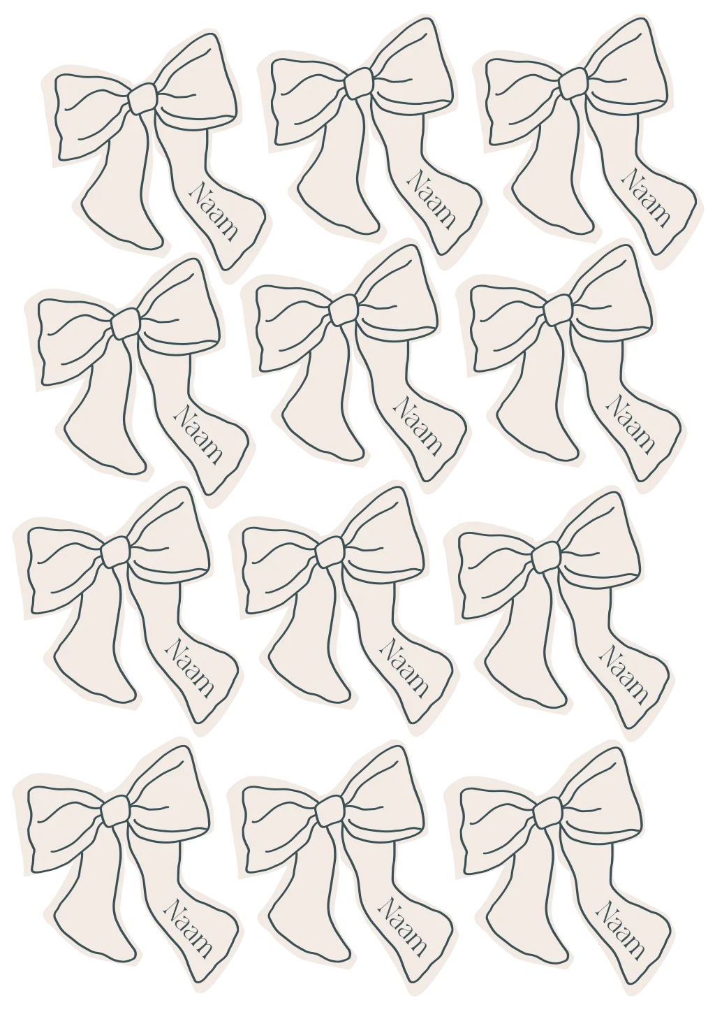 Prachtige naamkaartjes om de tafel helemaal af te maken. De kaartjes zijn in een strikjesvorm. Passend bij de uitnodiging.