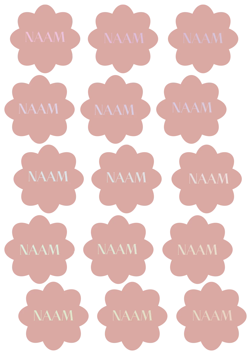 Prachtige naamkaartjes om de tafel helemaal af te maken. De kaartjes zijn in een bloemenvorm. Passend bij de uitnodiging.