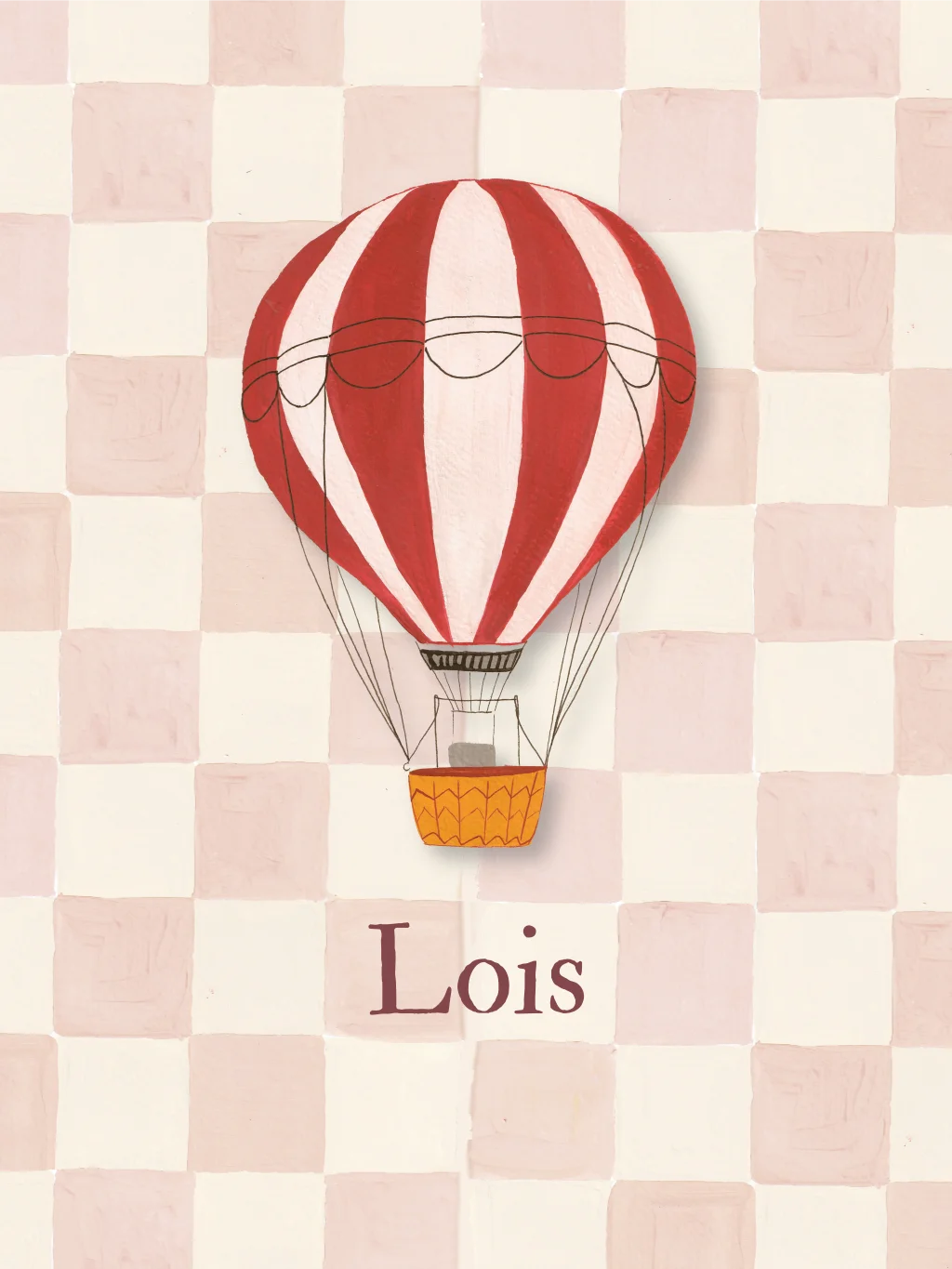Een schattige poster met lichte checkerboard print en een rode luchtballon.