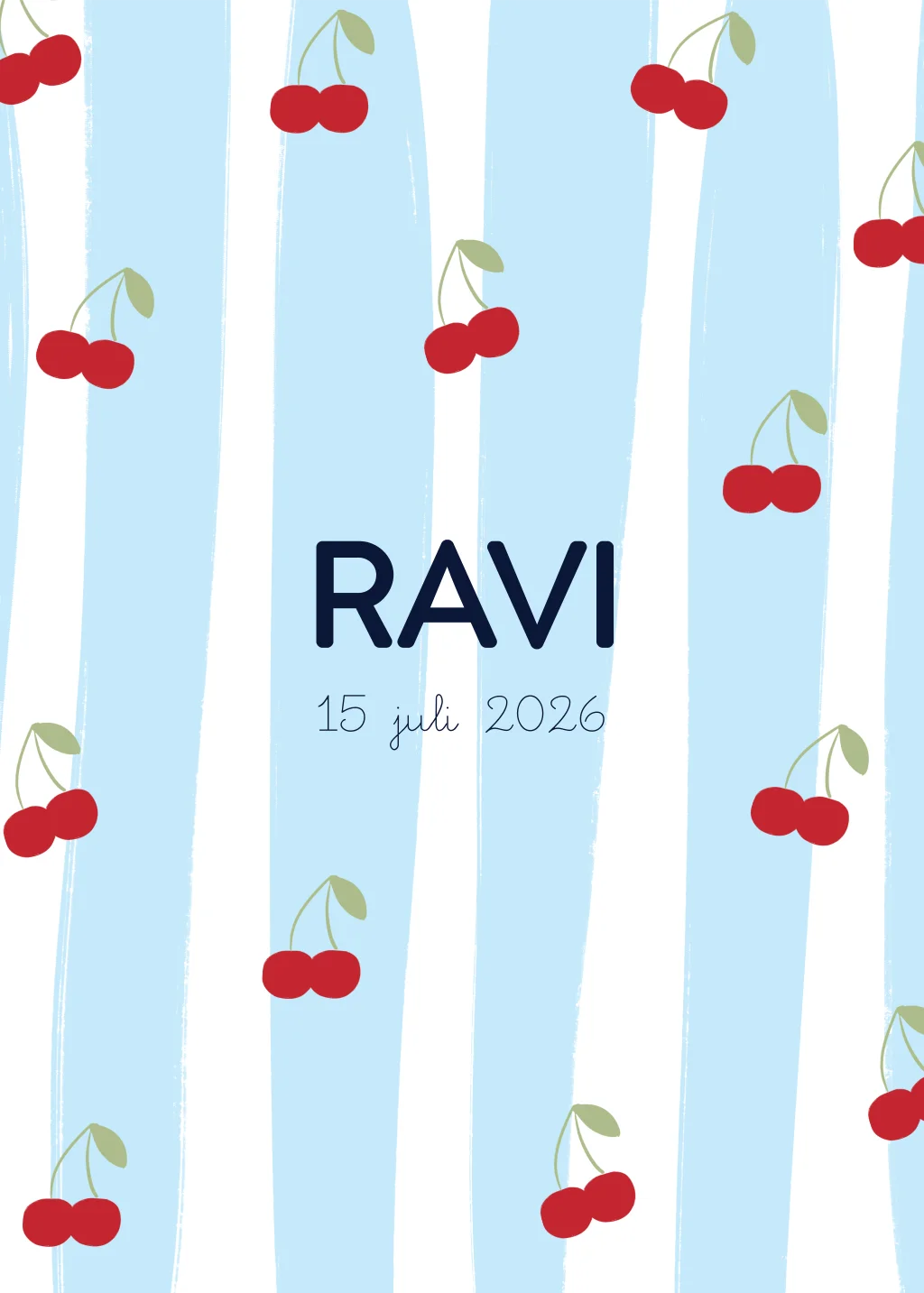 Mooie poster met kersen en streepjes om de kinderkamer helemaal af te maken! De kleuren zijn gemakkelijk naar wens aan te passen.