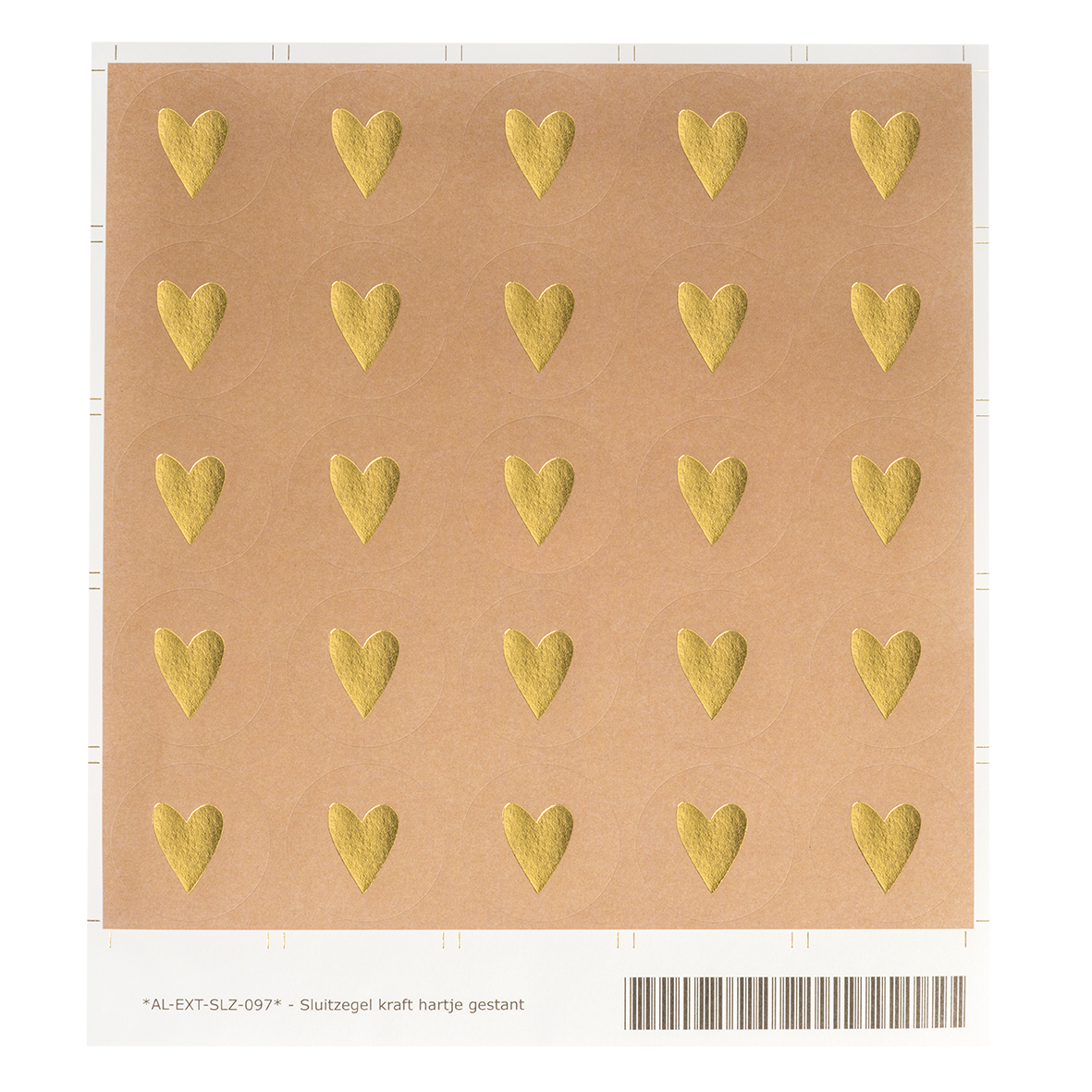 Hippe kraft sluitzegel met in het midden een klein hartje in goudfolie
