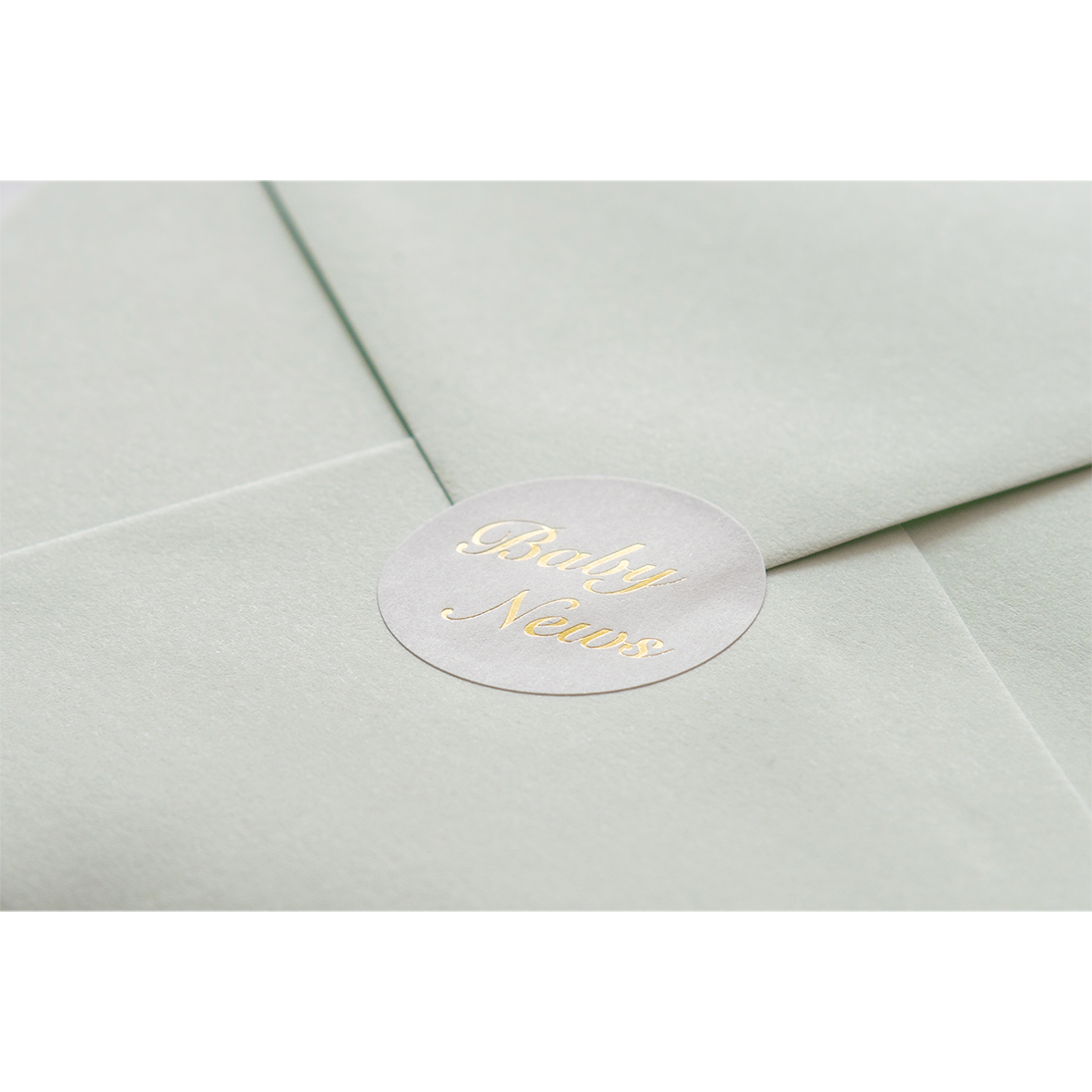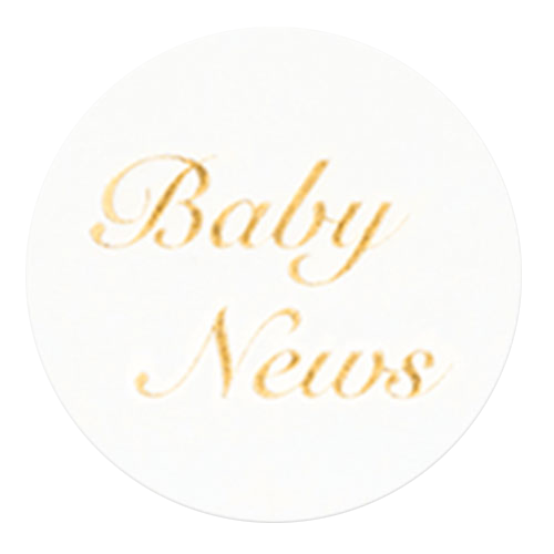 Witte sluitsticker met in goudkleurige sierlijke letters de tekst Baby News