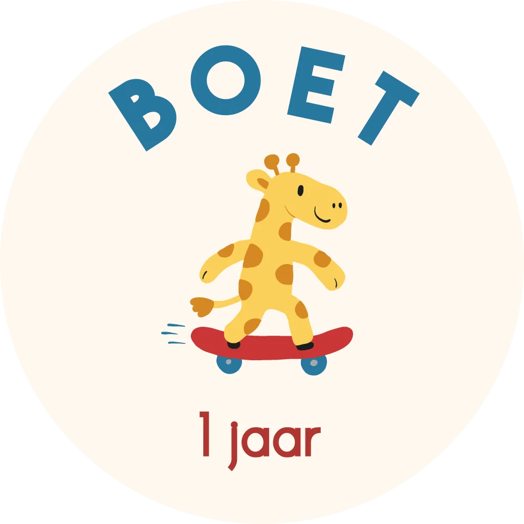 Sticker van 44mm met daarop vrolijke giraf op een skaeboard