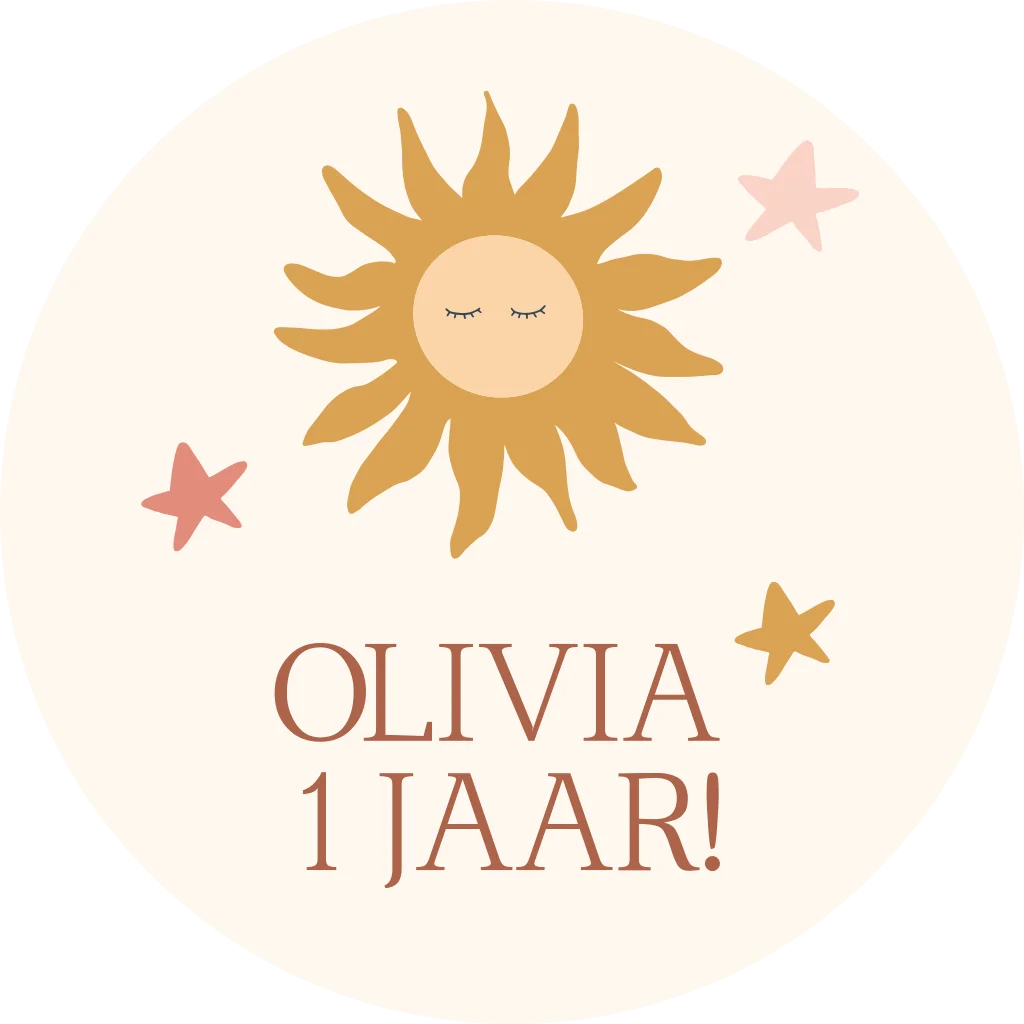 Sticker van 44mm met daarop een illustratie van een zon en sterretjes.