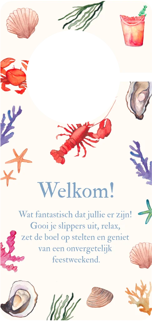 Toffe deurhanger met geschilderde strand elementen in aquarel.