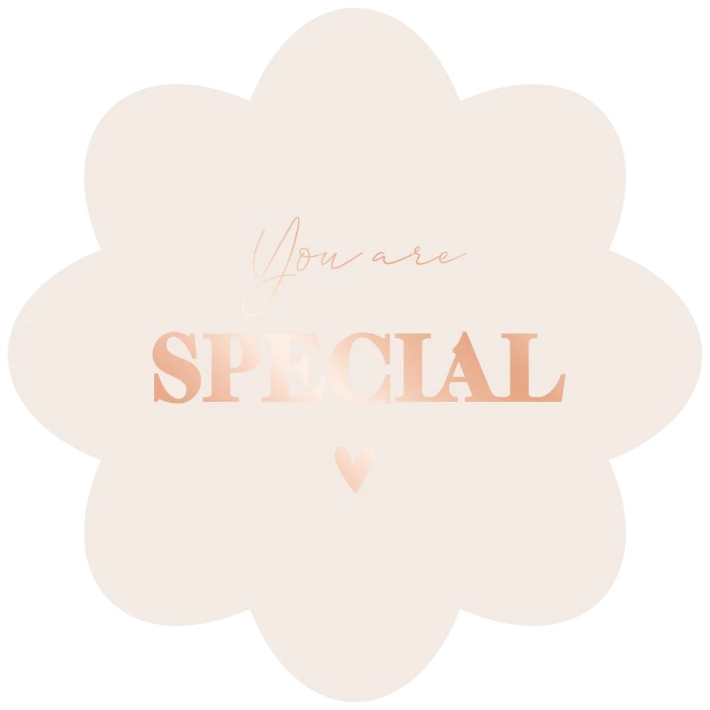 Een uniek extra kaartje in de stansvorm van een bloem.