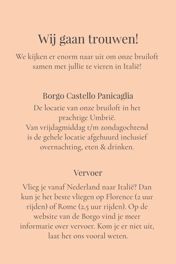 Wil je jouw genodigden wat extra informatie kunnen verschaffen? Stop deze handige insteekkaart in de uitnodiging.