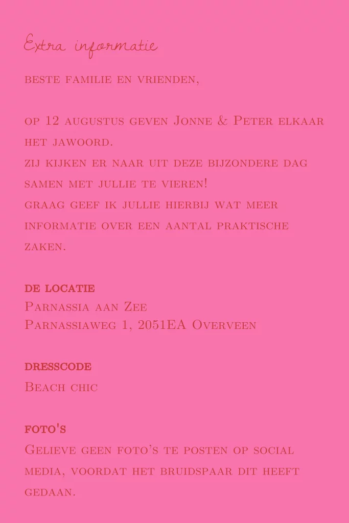 Wil jouw ceremoniemeester extra informatie toevoegen aan de trouwkaart? Dan is deze kaart passend bij de gehele collectie een mooie toevoeging aan het kaartje.