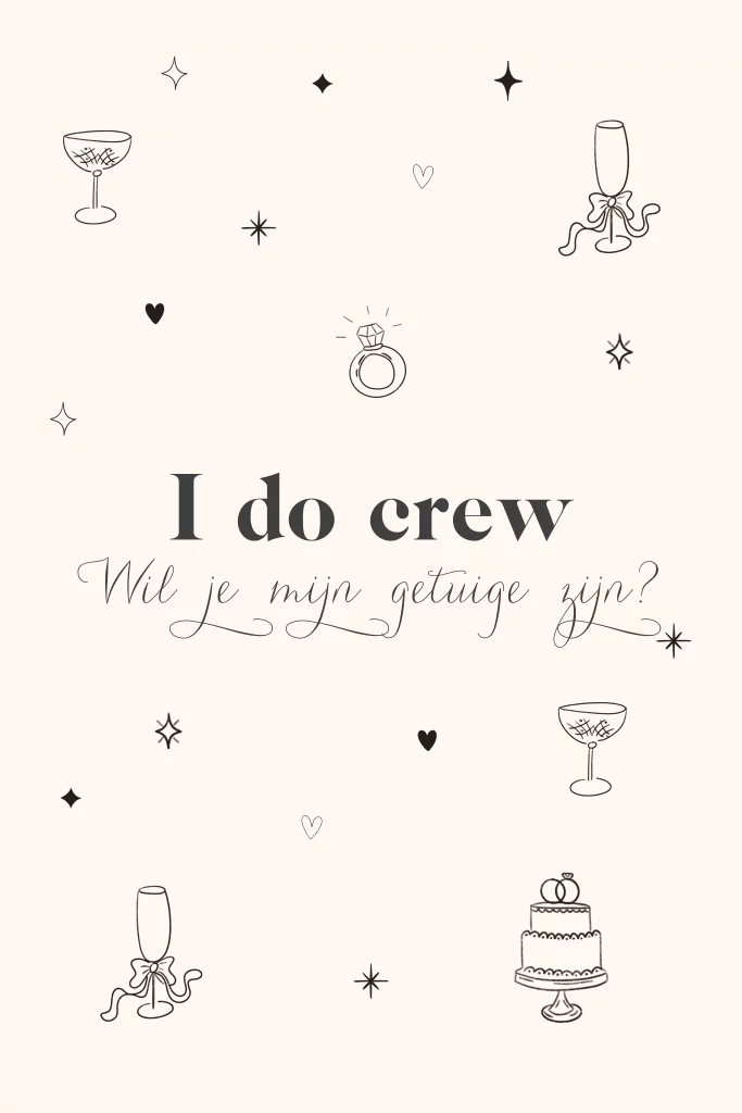 Mooie minimalistisch kaartje met fineline trouwelementen. Vraag je getuigen of ceremoniemeester op een stijlvolle manier.