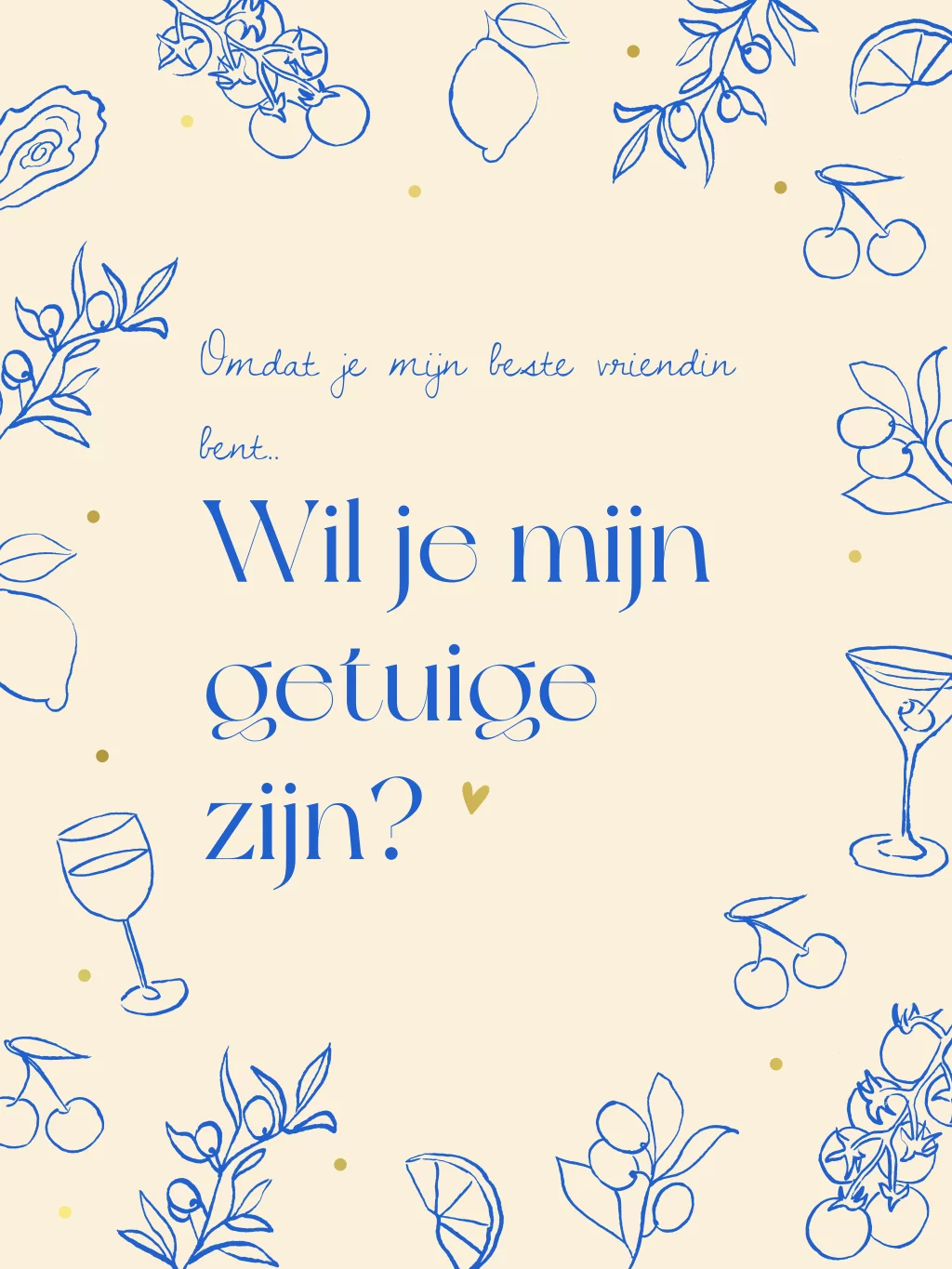 Het etiket is 90 x 120mm en plak je eenvoudig op een fles wijn. Een originele manier om iemand als getuige of ceremoniemeester te vragen!