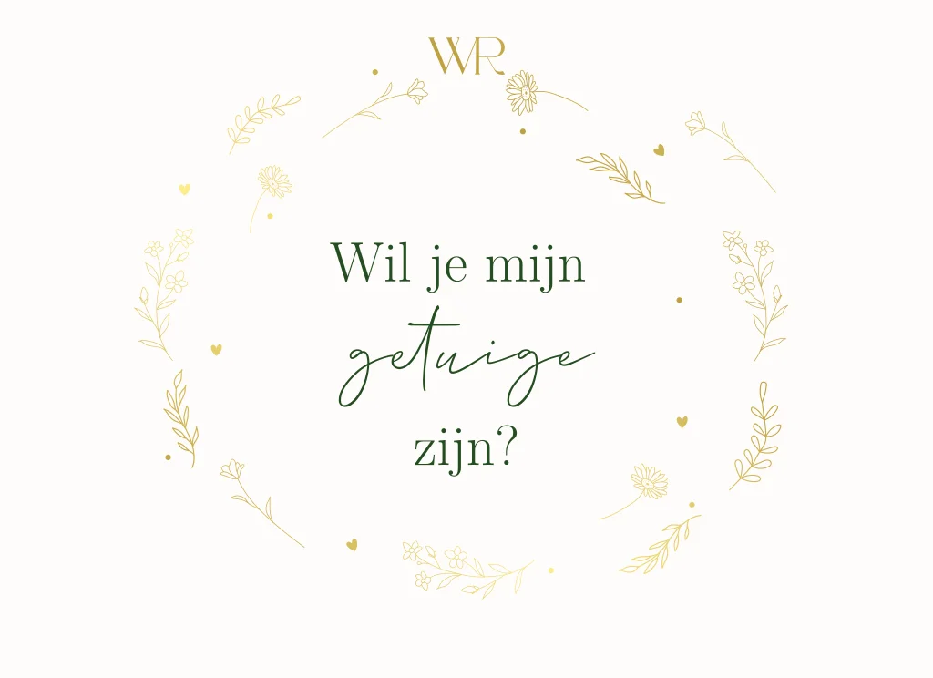 Vraag je getuigen of ceremoniemeester met deze speciale wijnetiketten! De etiketten hebben mooie bloemen en takjes in goudfolie.