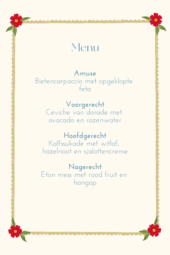 Prachtige menukaart in bohemian stijl. Maak je tafelsetting af met deze mooie kaart!