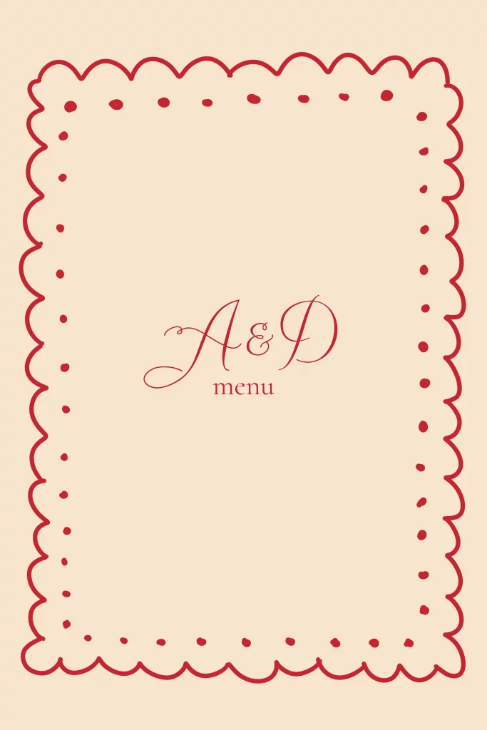 Een sfeervolle menukaart met kringelrand en stipjes in dezelfde stijl als de andere ontwerpen van deze stijl.