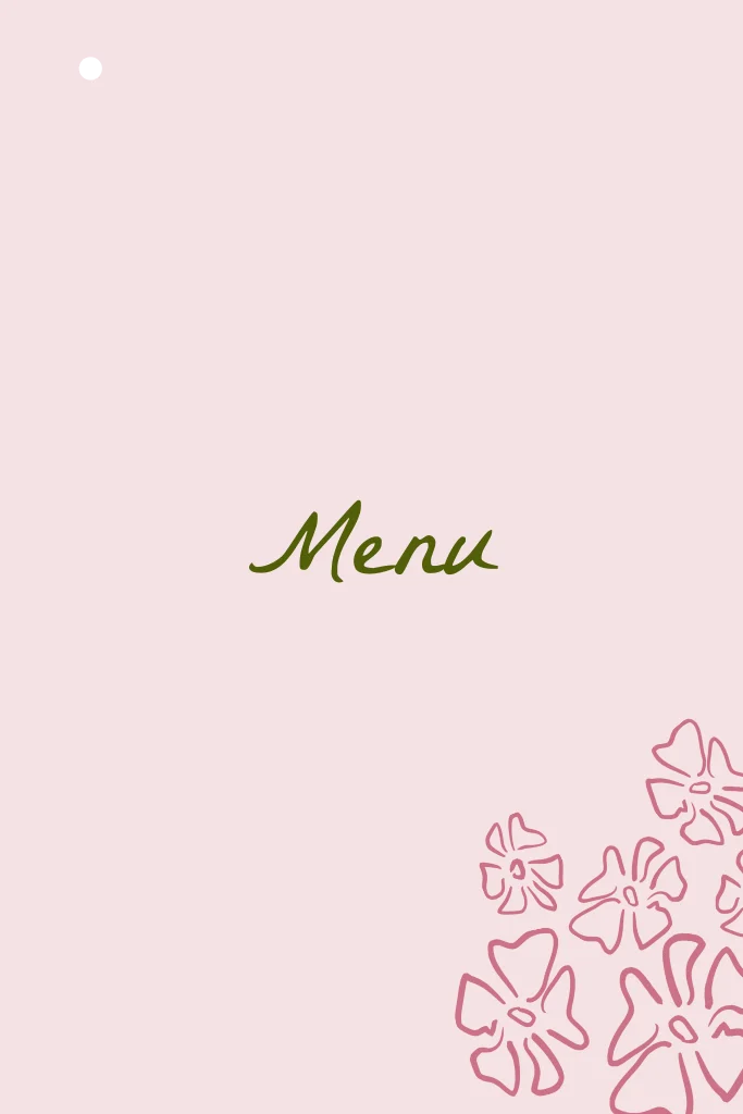 Het menukaart heeft bovenin een gaatje om de bijpassende naamkaartjes te bevestigen met een splitpen en eventueel een leuke tassel.