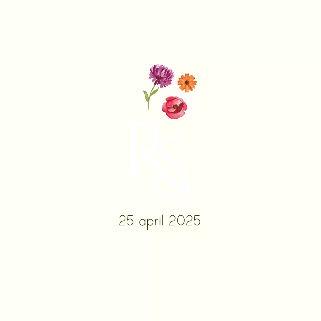 Unieke klassieke save the date met prachtige bloemen, door ons geschilderd in aquarel.