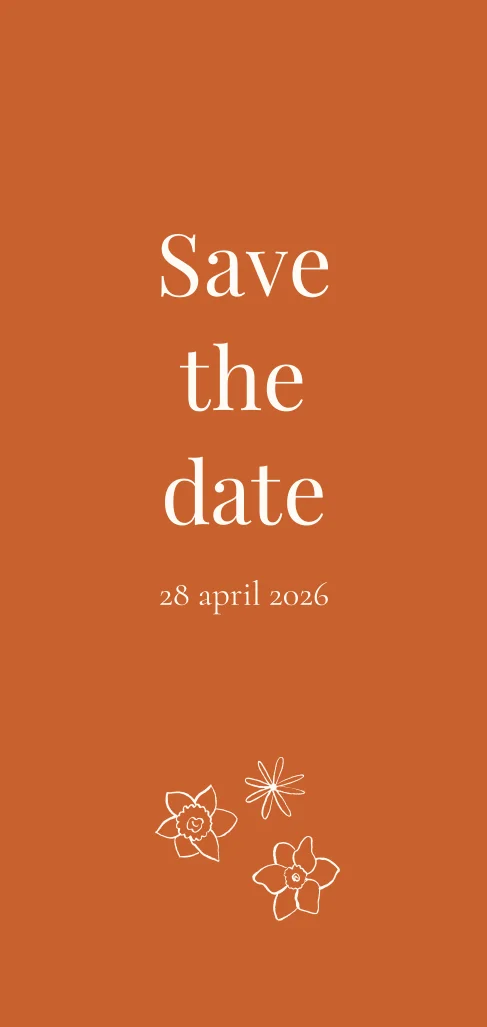Mooie minimalistische save the date kaart met een met getekende elementen. Deze kaart past perfect bij de uitnodiging, zonder direct het hele design prijs te geven!