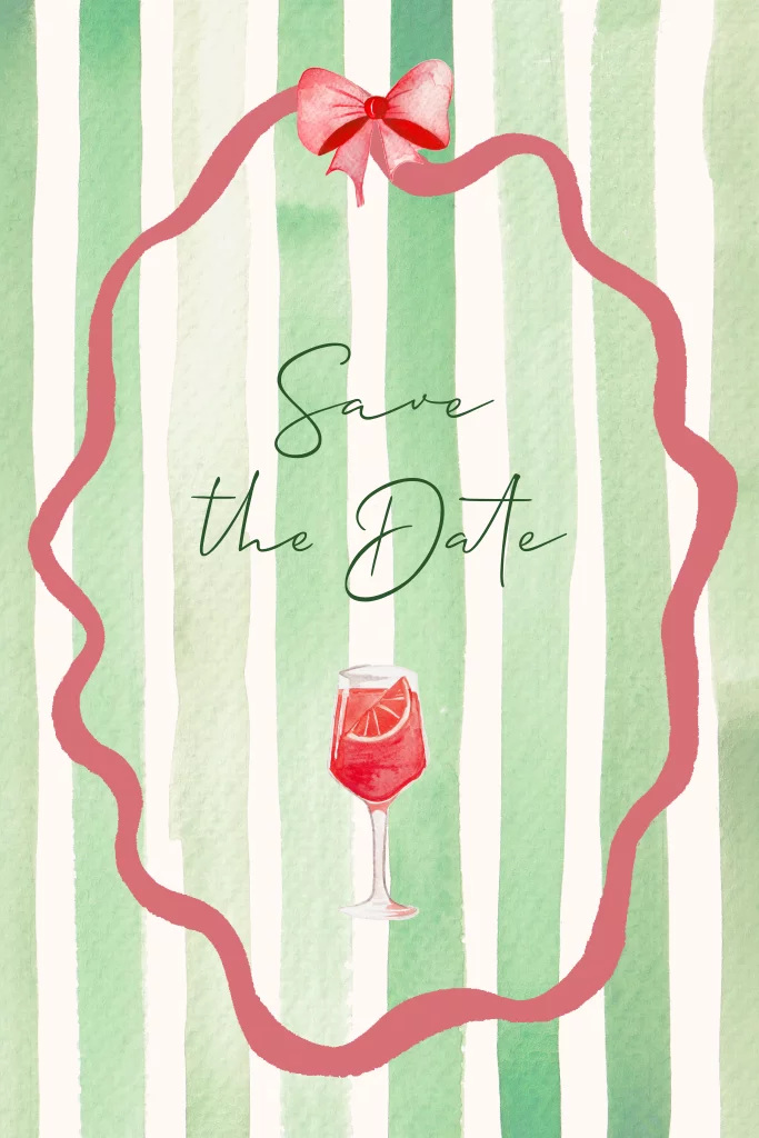 Unieke save the date met strepen en Italiaanse elementen, door ons geschilderd in aquarel.