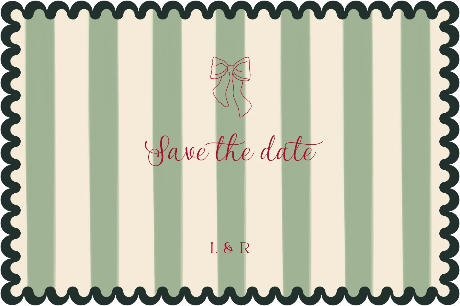Kondig je trouwdatum aan met kerstkaart met strepen en een strik.