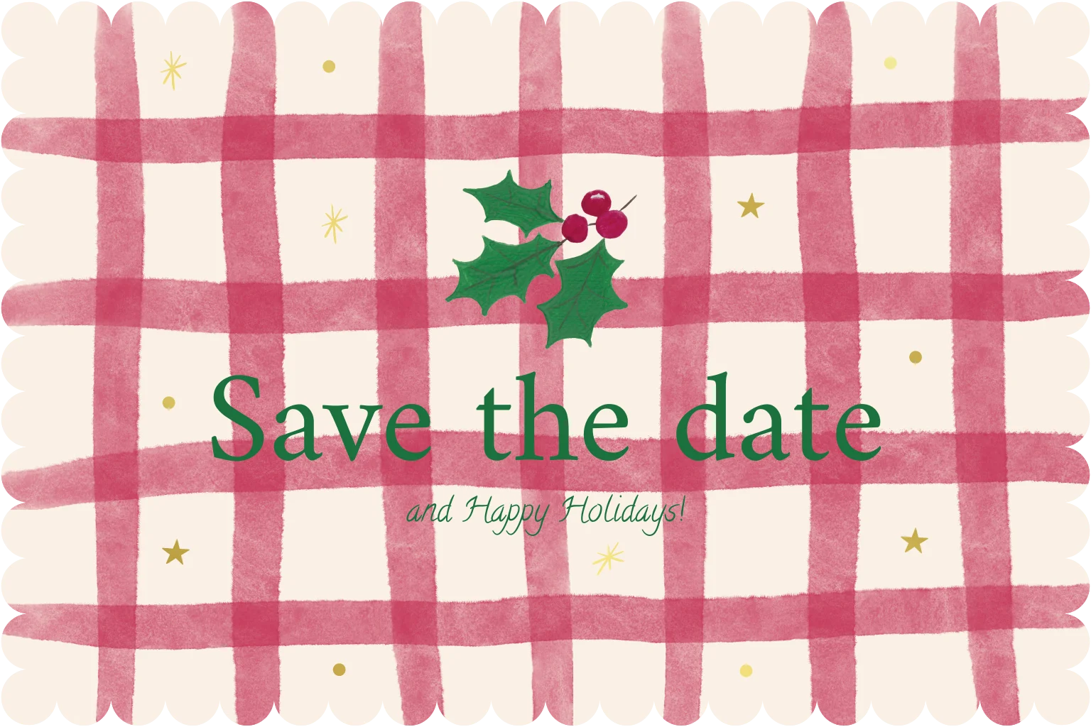 Unieke save the date kaart waarmee je ook je gasten fijne feestdagen wenst!