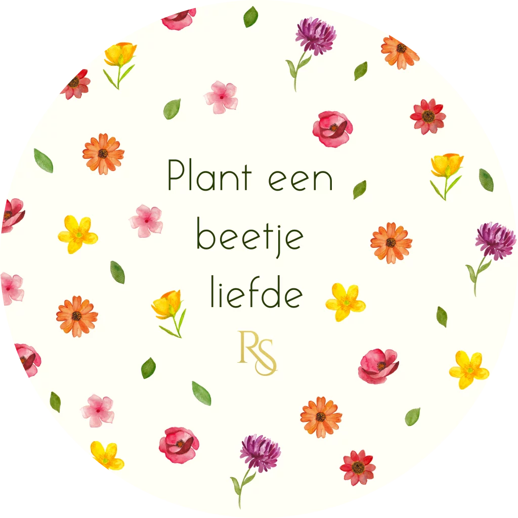 Sticker met bloemen. Plak deze sticker op een zakje zaadjes of een ander cadeautje om je gasten te bedanken op je bruiloft!