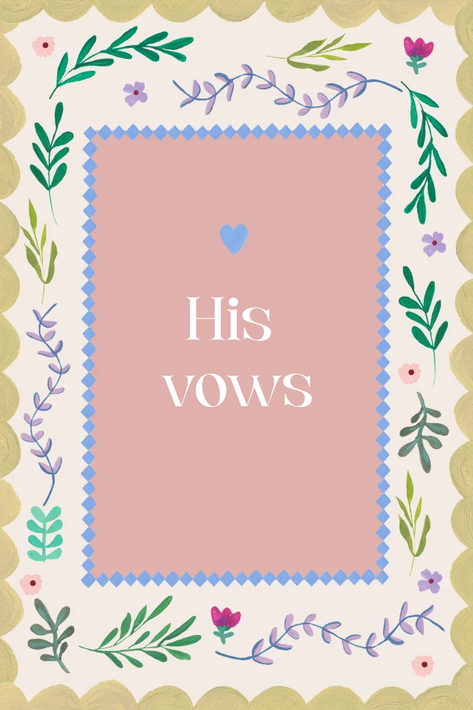 Een kaartje om jouw liefdevolle geloften in op te schrijven. Dit vows boekje is opgemaakt in stijl van de uitnodiging