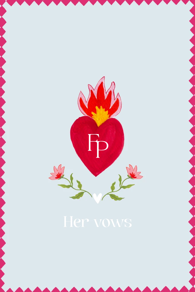 Een kaartje om jouw liefdevolle geloften in op te schrijven. Dit vows boekje is opgemaakt in stijl van de uitnodiging met een boho hart op de voorkant.