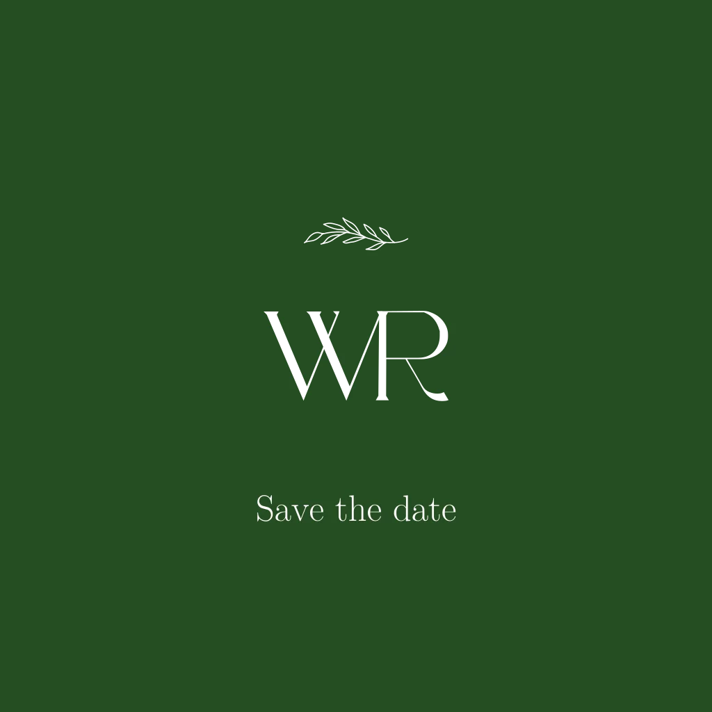 Mooie klassieke save the date met een logo en een takje Het goudfolie maakt de kaart mooi chique!