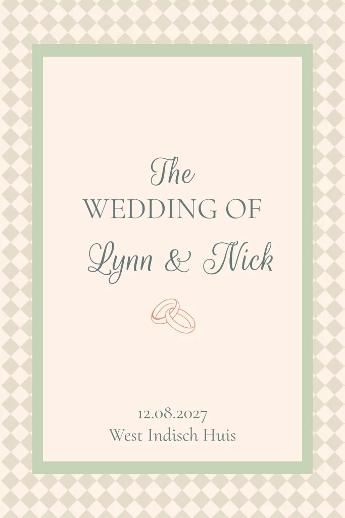 Mooie trouwkaart met een ruitjespatroon in zachte tint met groene details.