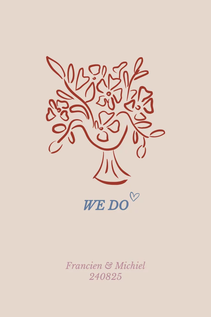 Op zoek naar de perfecte uitnodiging voor jullie speciale dag? Ontdek onze prachtige en unieke trouwkaart met een getekende vaas op de voorkant. De achterkant is versierd met dezelfde stijl bloemen, waardoor het een prachtig geheel vormt. Deze uitnodiging straalt elegantie en stijl uit, perfect passend bij jullie bruiloft. De subtiele kleuren beige en de verfijnde lijntekening geven de kaart een tijdloze uitstraling.