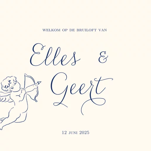 Passend in de gehele huisstijl een prachtig welkomstbord met een cupido.