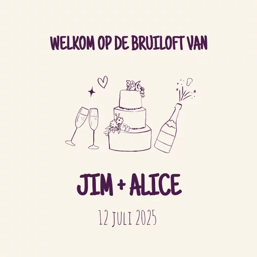 Welkomstbord bijpassend in de trouwhuisstijl van Jim & Alice