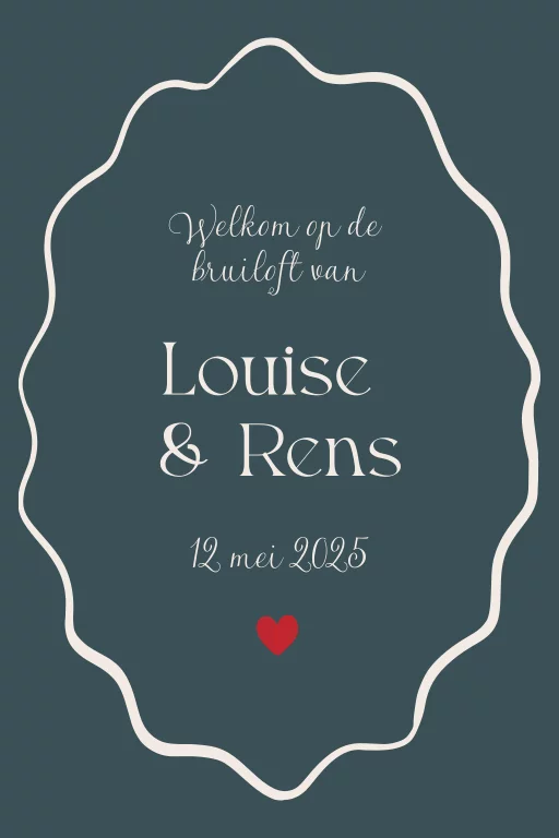 Ons prachtige welkomstbord in rechthoekige vorm met een elegante kringelrand is de perfecte manier om uw gasten te verwelkomen op deze speciale gelegenheid.