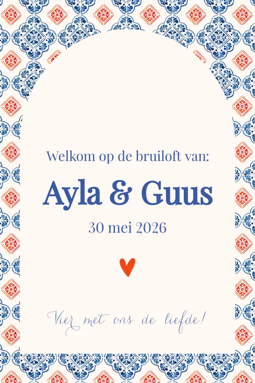 Mooi bruiloftsbord met Spaanse tegels en een boogvorm.