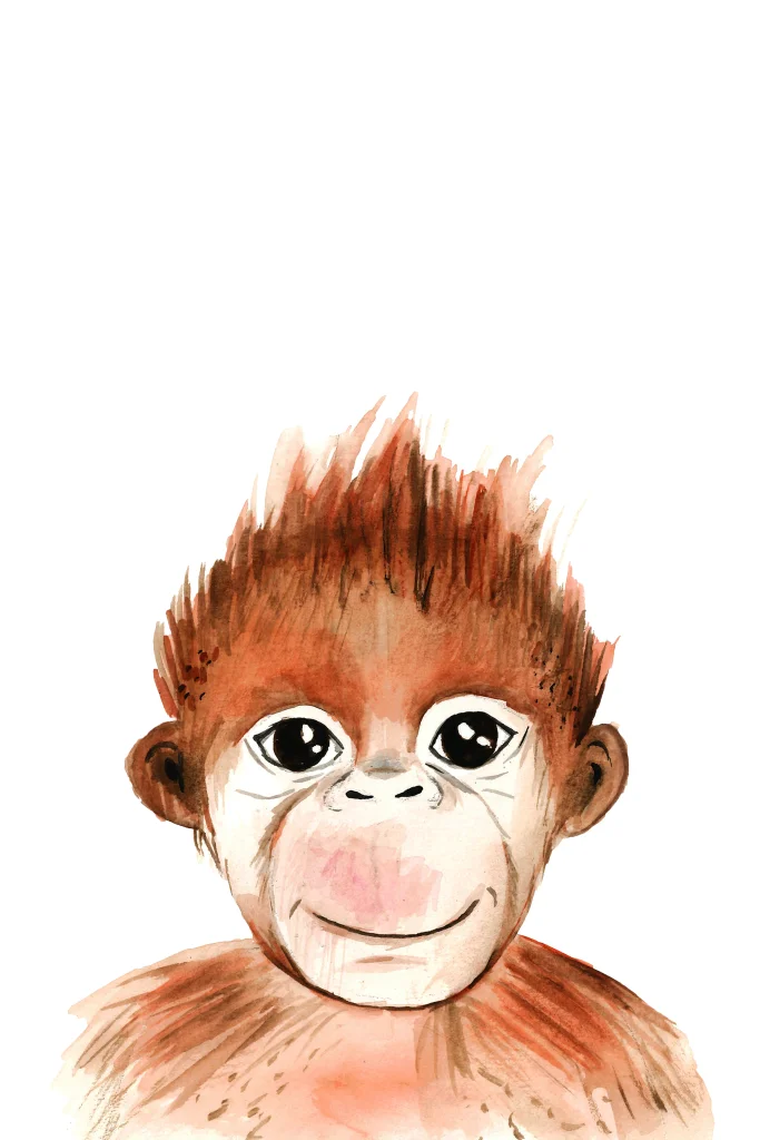 Voor alle kleine apekoppen! Kaart van een aap, handgeschilderd in aquarel.