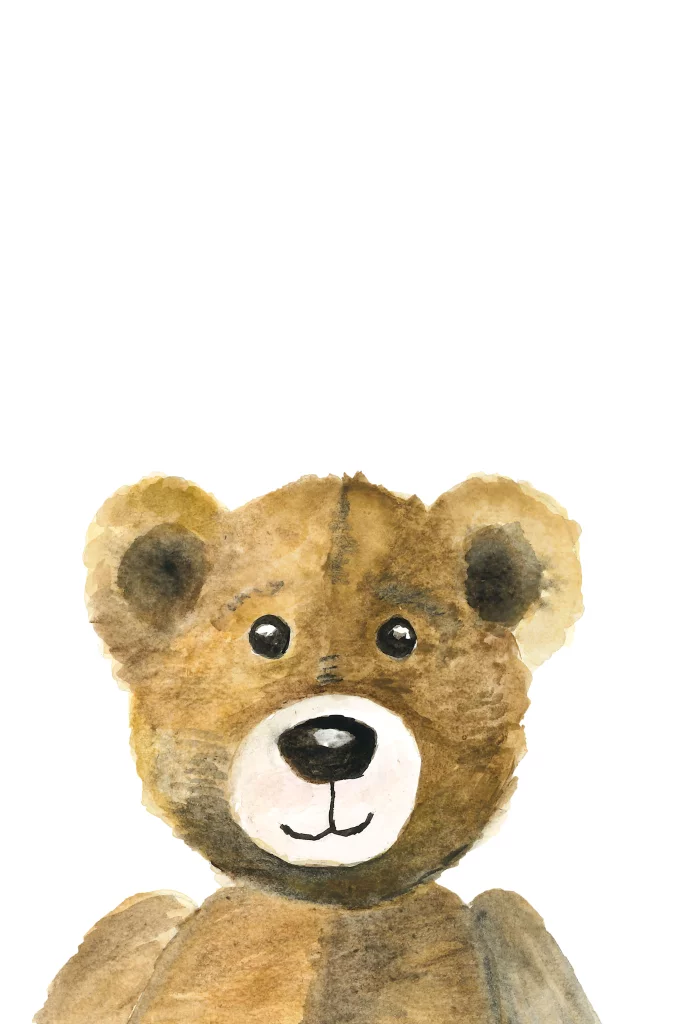Kaart van lieve beer, geschilderd met waterverf. Verras iemand met deze kaart, of lijst hem in voor eigen gebruik.