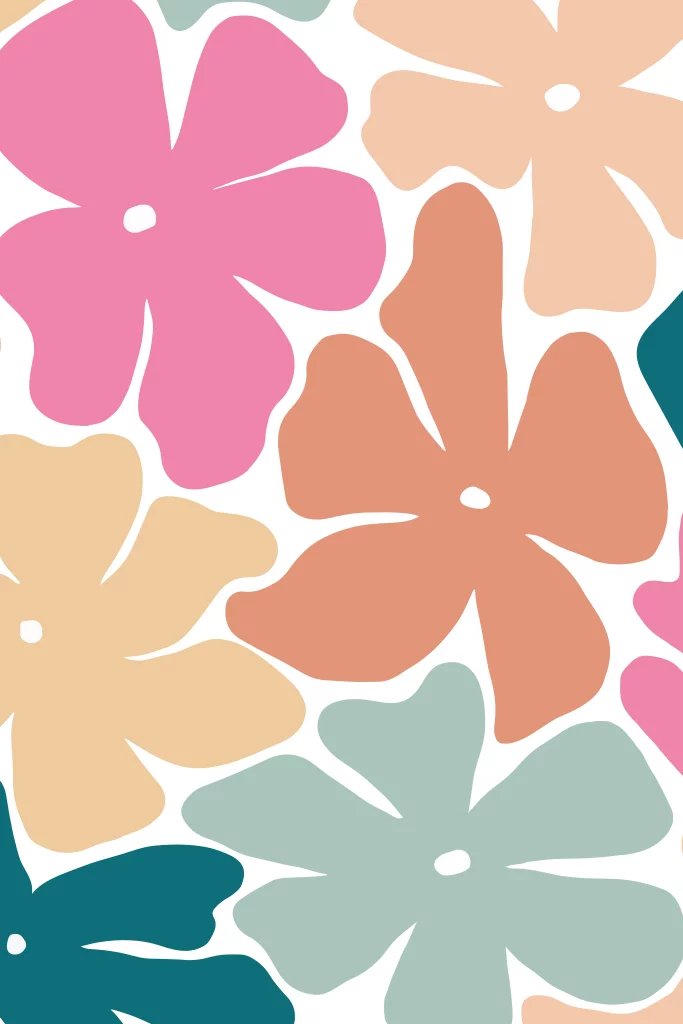 Kaart met een print van grafische bloemen in mooie heldere kleuren. De illustratie is door ons gemaakt en gedrukt op dik duurzaam papier. Verras iemand met deze kaart, of zet ‘m neer ter decoratie.