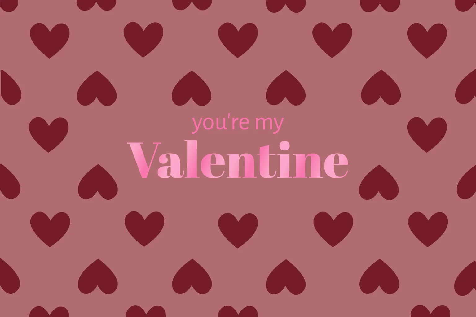 Verras je Valentijn met een persoonlijk kaartje! Valentijnskaart met hartjesprint in hippe donkerrode burgundy kleur. Pas de tekst eenvoudig aan en verstuur direct naar je ontvanger toe.