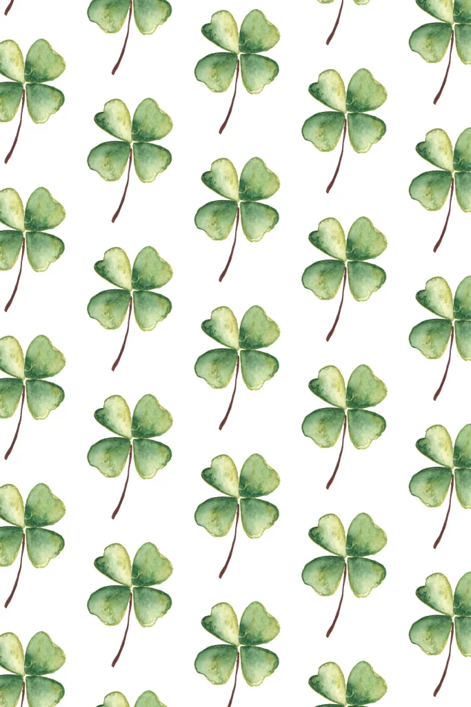 Kaart met een print van klavertjes vier, geschilderd met waterverf.